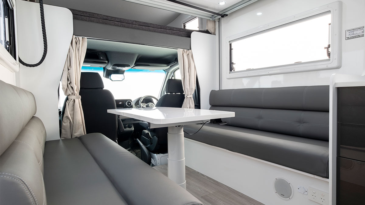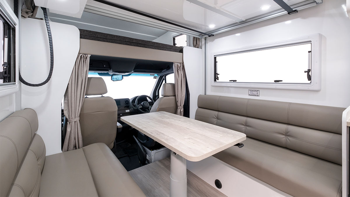With a quality build and superior functionality, the Cottesloe has been crafted for adventure. Whether you're a solo traveller, a couple who love mini-breaks, or active seniors enjoying their twilight years, its dual-purpose layout allows you to optimise space for day and nighttime living with the touch of a button. It's also packed with features, including air conditioning, a full ensuite, a lounge/dinette, and a kitchen filled with modern appliances. Built on a luxury Mercedes chassis, its compact 2-berth size will have you navigating city streets and tight camping spots with ease.