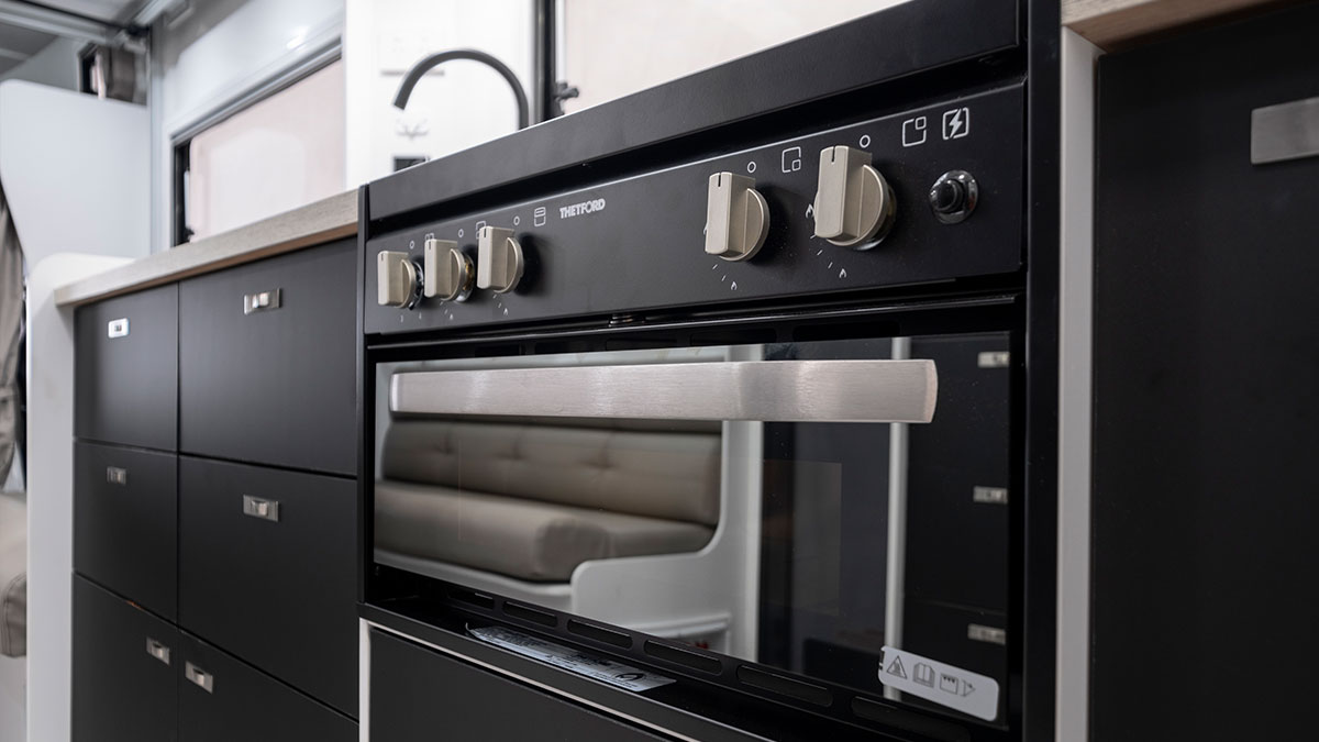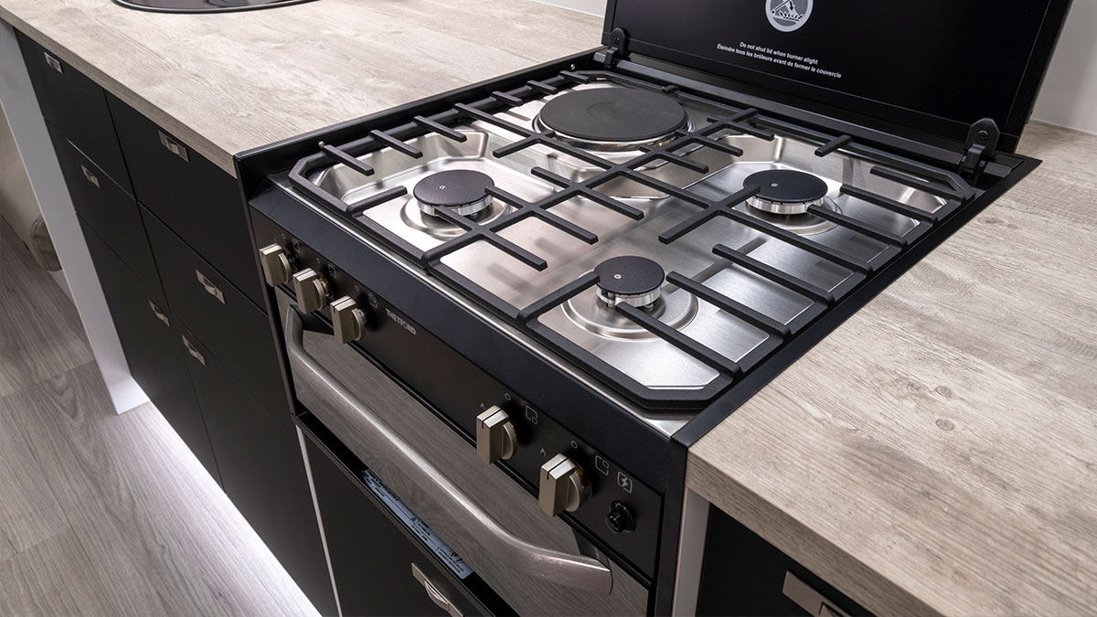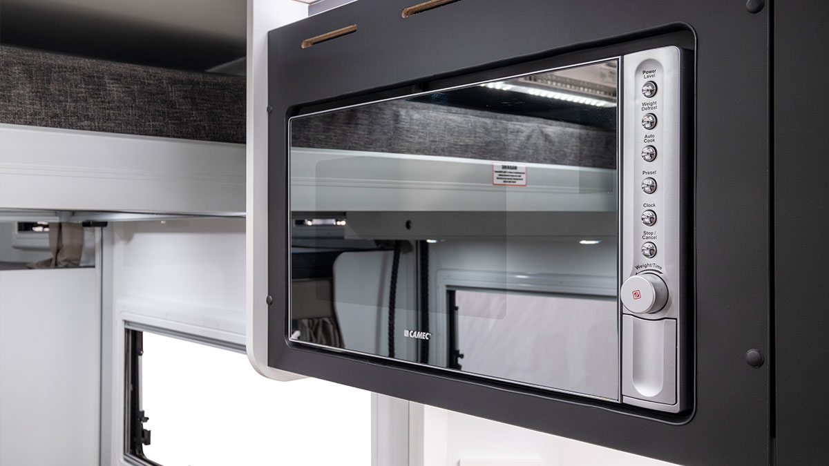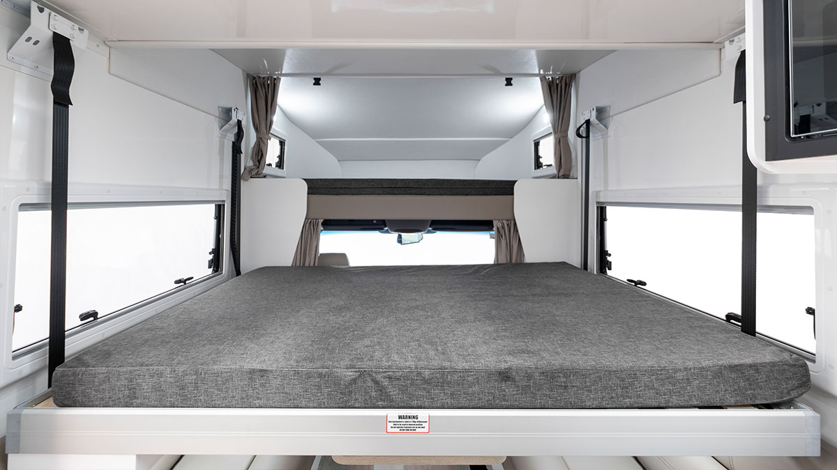 By day, relax and dine in the lounge/dinette area, and when it's time for slumber, the press of a button will activate an electric drop-down bed.