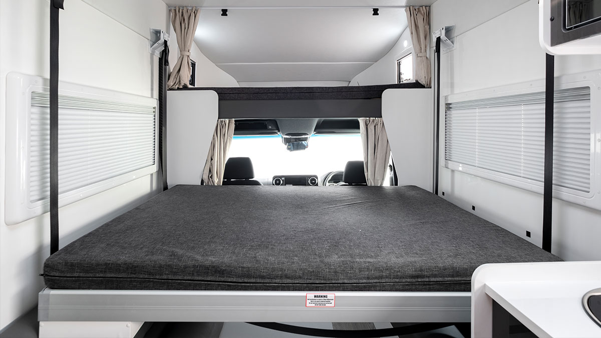 With a quality build and superior functionality, the Cottesloe has been crafted for adventure. Whether you're a solo traveller, a couple who love mini-breaks, or active seniors enjoying their twilight years, its dual-purpose layout allows you to optimise space for day and nighttime living with the touch of a button. It's also packed with features, including air conditioning, a full ensuite, a lounge/dinette, and a kitchen filled with modern appliances. Built on a luxury Mercedes chassis, its compact 2-berth size will have you navigating city streets and tight camping spots with ease.