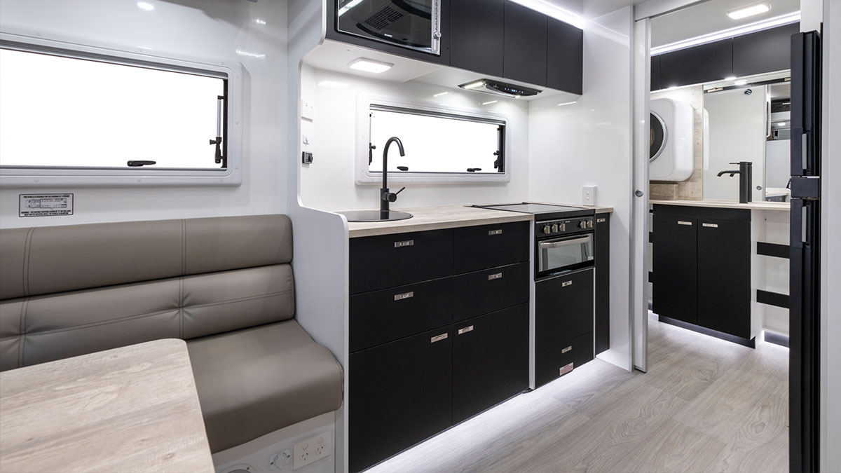 If you’re after a Winnebago Cottesloe for sale, you’ll be impressed with the convertible interiors, air conditioning, full-size ensuite, and a kitchen with modern appliances.