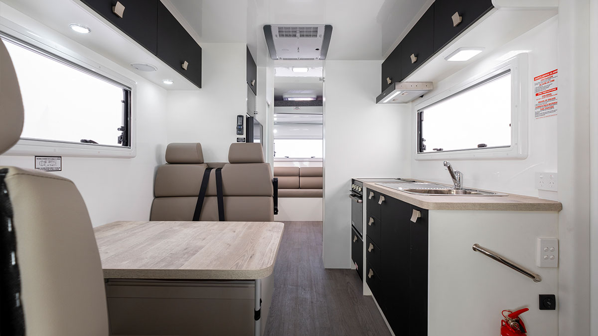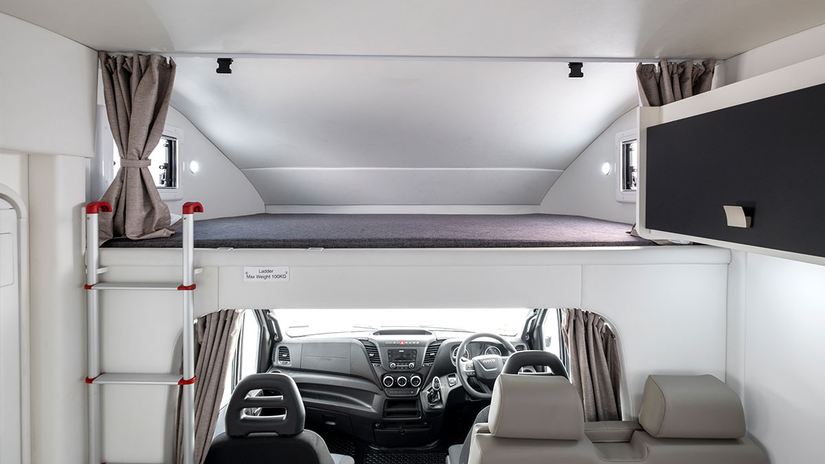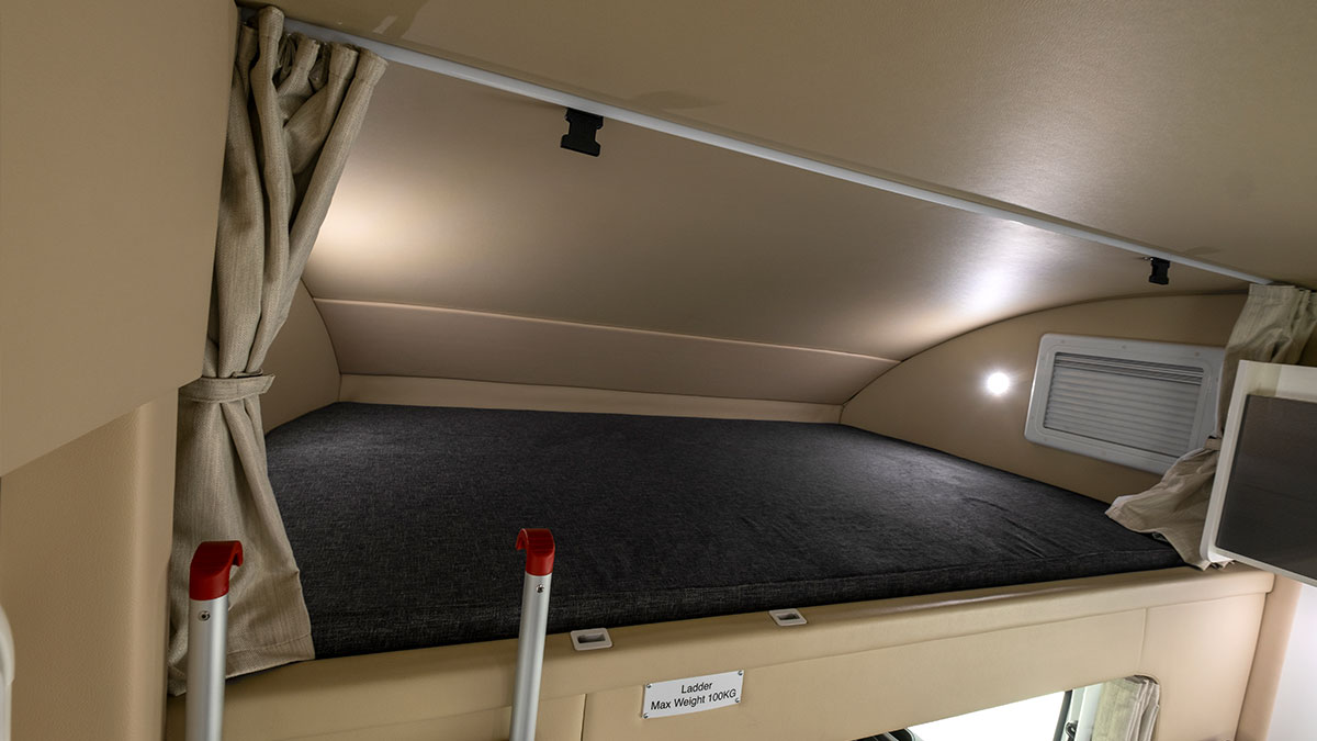 A cafe-style dinette will make meal times seamless, and if kids, guests or grandkids are along for the ride, the cab bed conversion will have their sleep sorted.