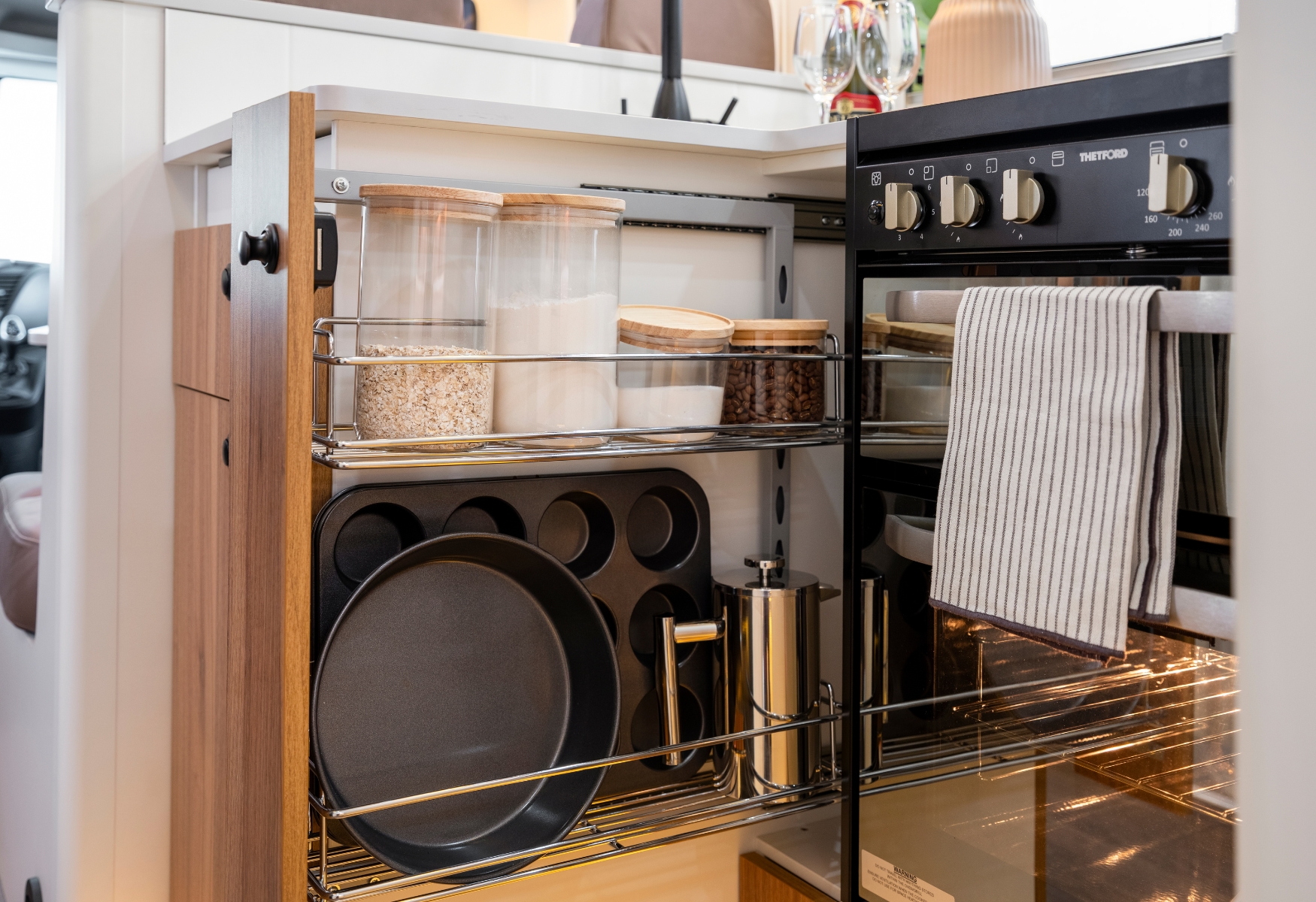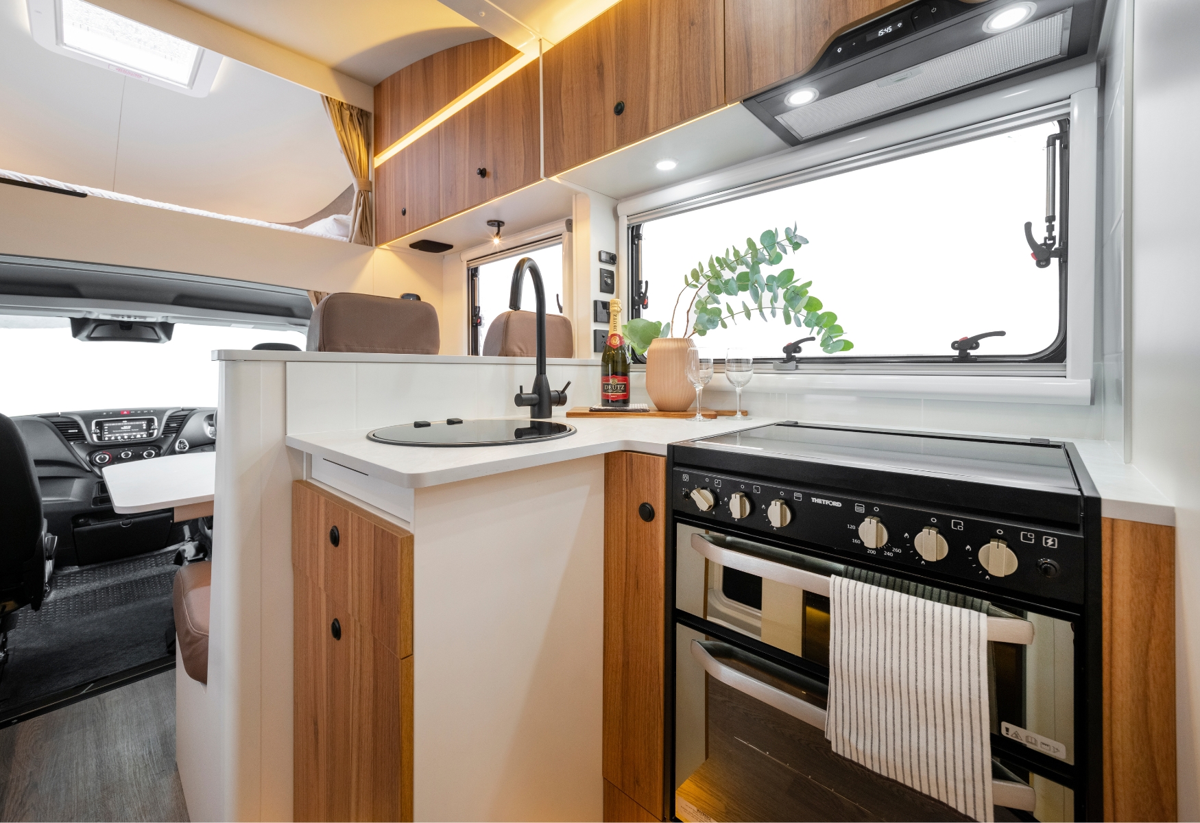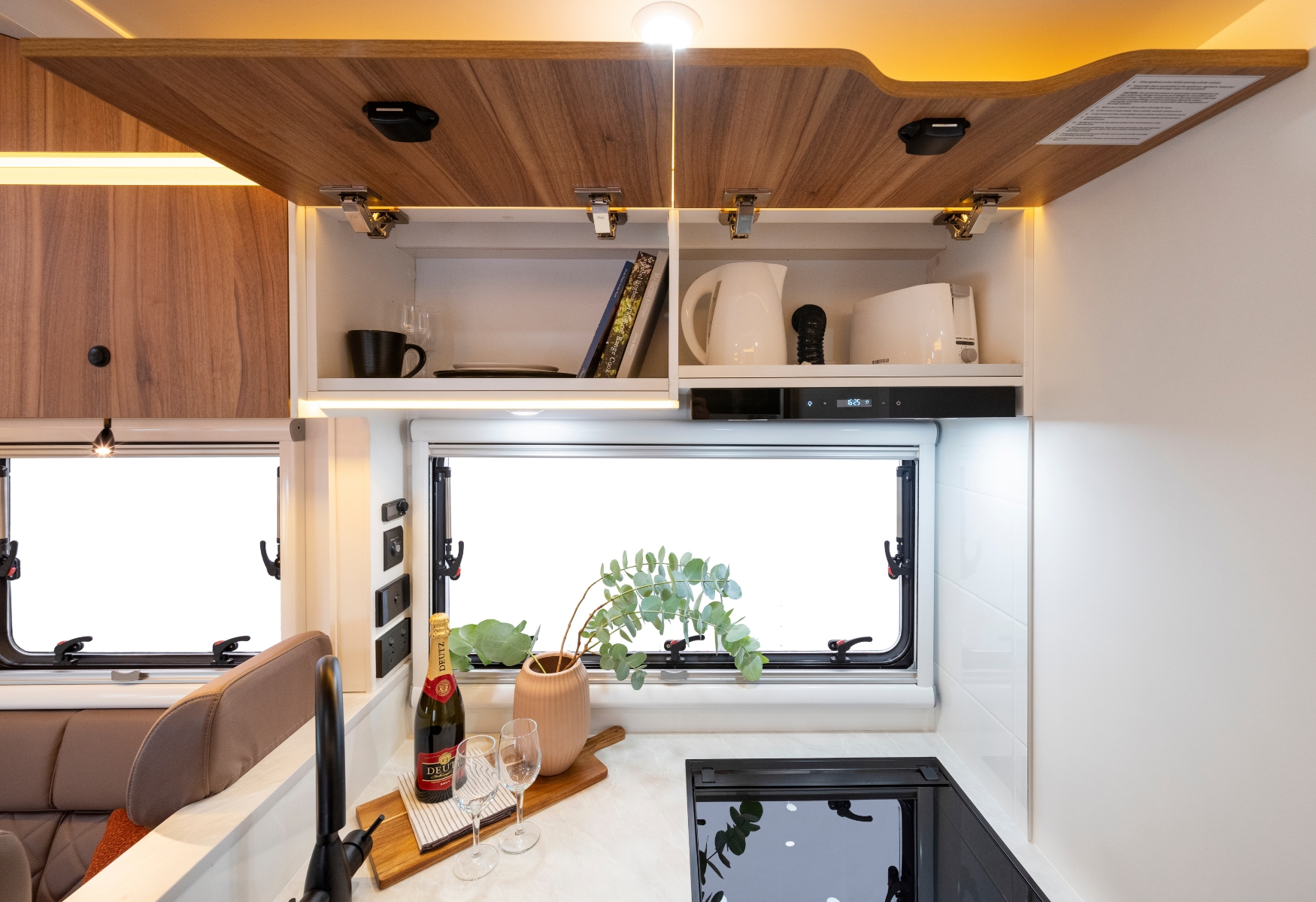 - Clever storage keeps essentials organised and within reach.